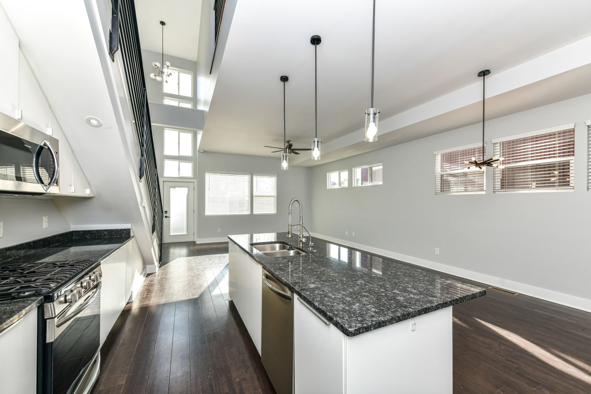 The kitchen is truly the heart of the home, designed for those who love to cook and entertain. A large center island anchors the space, offering generous prep area, seating, and a natural gathering spot. Granite countertops provide durability and a clean, modern look, while the gas range and oven will be appreciated by home chefs who value precision and performance. The layout is completely open to the main level, creating seamless flow between the kitchen, dining, and living areas—ideal for entertaining or relaxed everyday living.