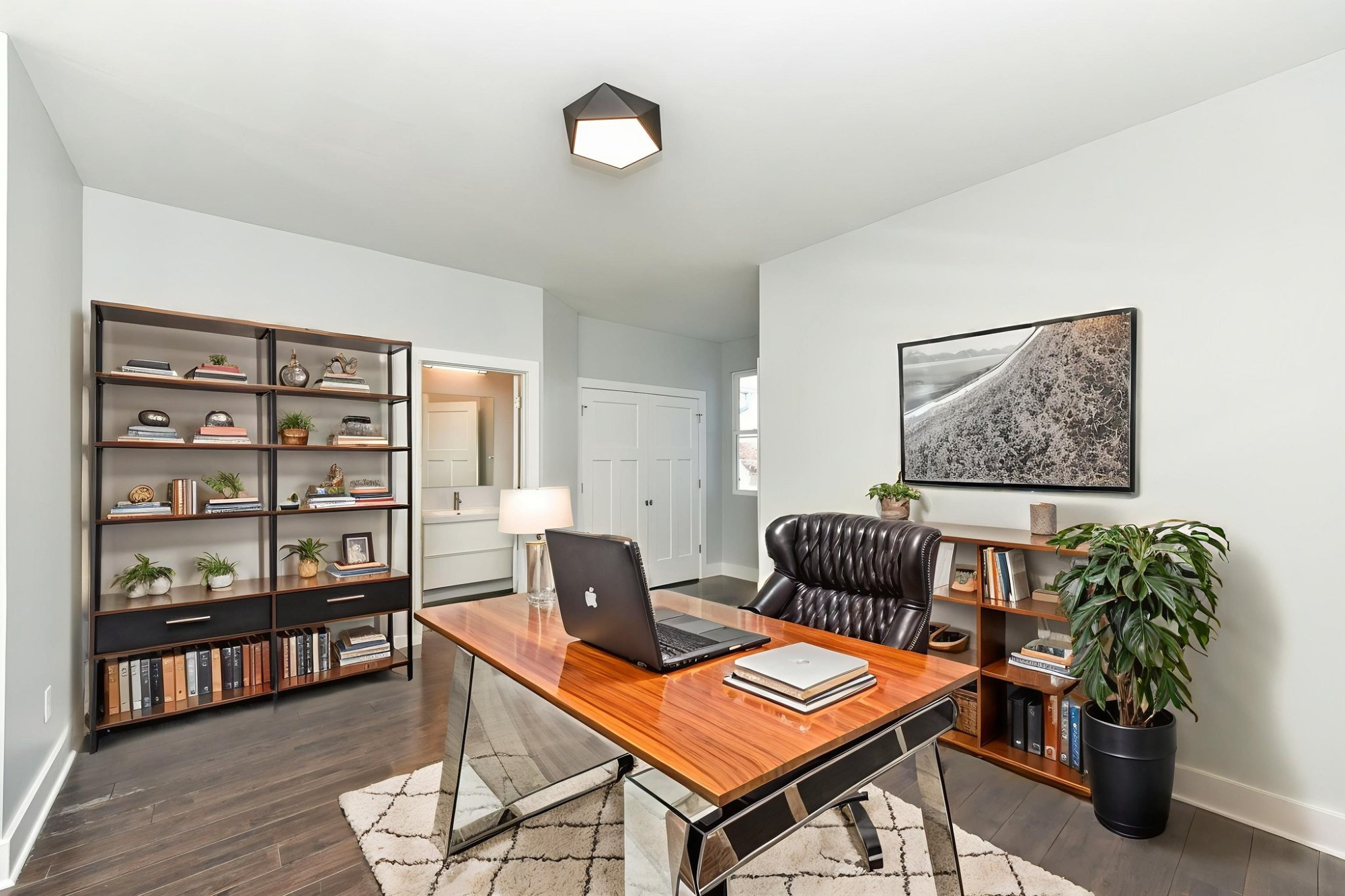 A flexible loft area provides an ideal dedicated workspace or home office — a valuable bonus for remote professionals or creative pursuits.