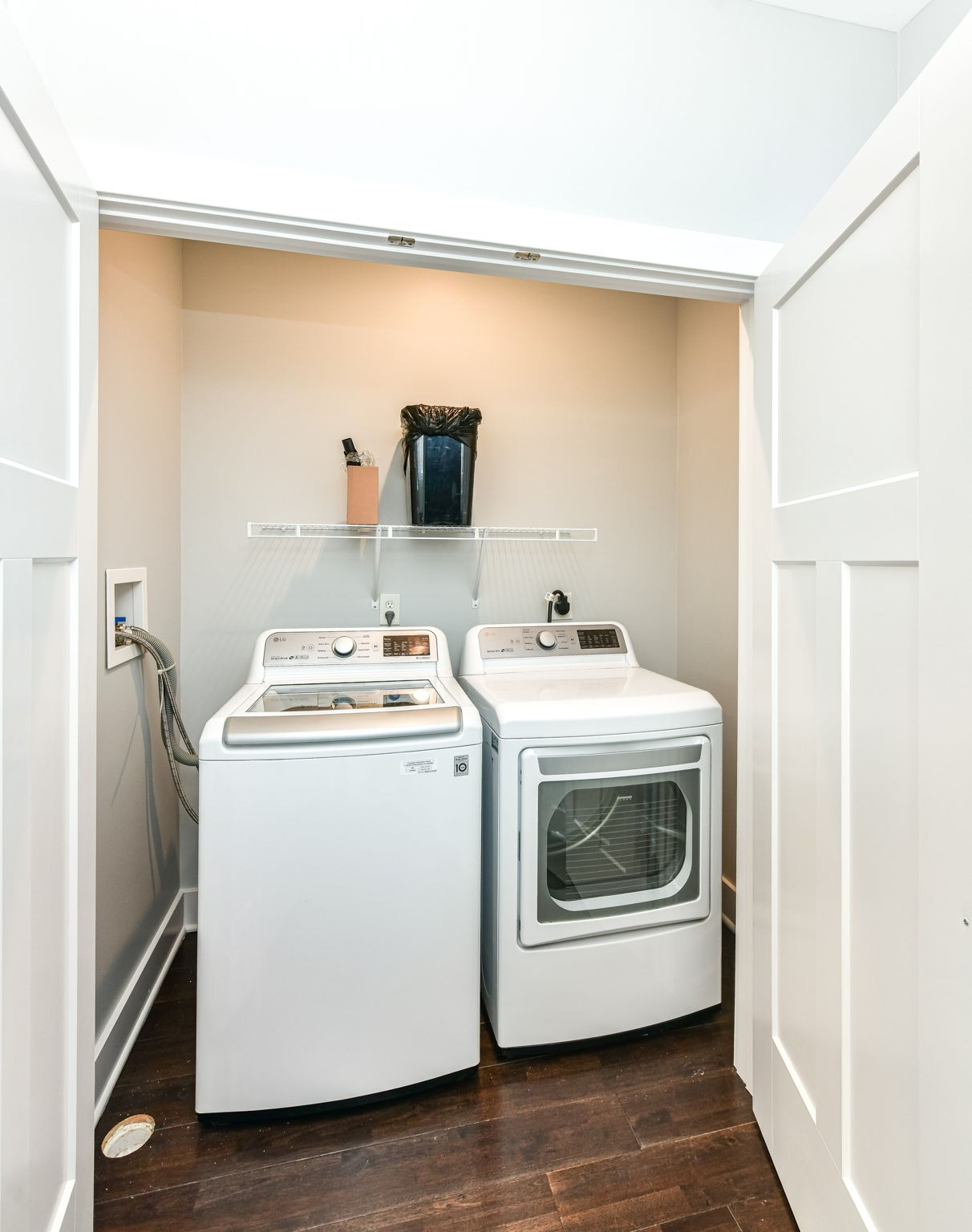 A third bedroom and full bath on the main level provide exceptional flexibility, perfect for guests, a private home office, or multi-generational living. Upstairs, the remaining bedrooms are complemented by the convenience of second-level laundry, thoughtfully located near the sleeping quarters.